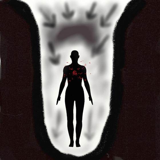 I worked with Kelly over a period of about a week, perhaps four or five long sessions. Here’s an image she drew of a state she called Black Hole: