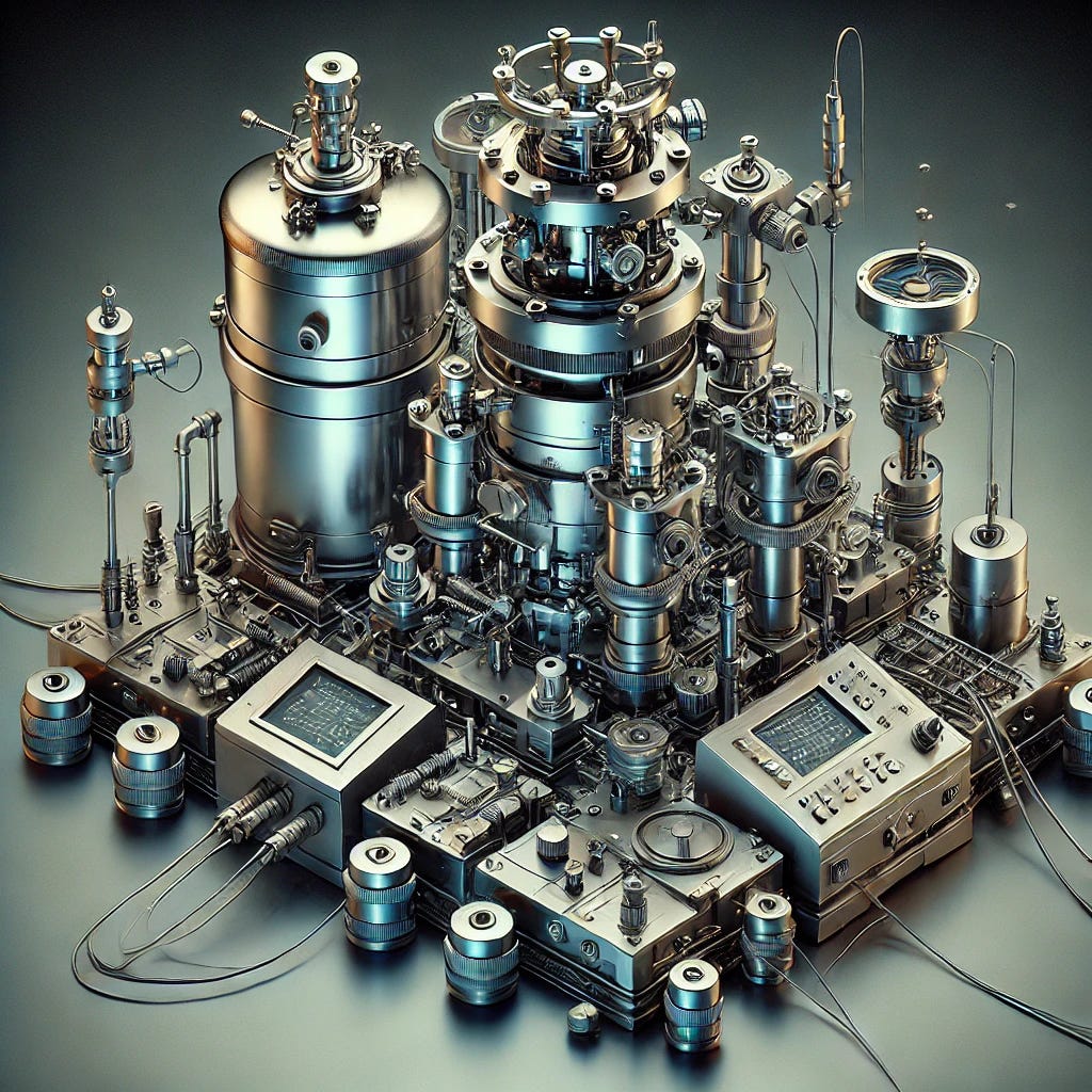 We can turn for an example of this to any one of many tools of observation used in the physical sciences. Take the Scanning Tunneling Microscope (STM). This machine applies a quantum phenomenon called electron tunneling to scan atomic surfaces. Here’s a sci-fi-style rendering of one of these STMs (I couldn’t find a good photo with no copyright restrictions).