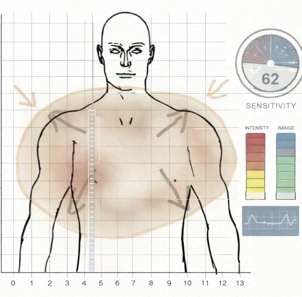 I had many such moments in the early years of developing this work. For example, I think I’ve mentioned the shock of facilitating someone mapping their experience of anger and having it show up as a green pair of stomping boots embedded in their feet. The fact that my own anger never looked like that, plus the gigantic stretch I had to make to imagine such a thing was even possible, encouraged me to accept the diverse uniqueness in every feeling experience and to set aside my expectations. As we move forward, we will encounter more such shocks, and they will point the way toward our further investigations and discoveries.